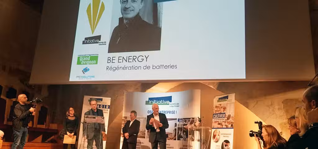 28 janvier 2020La fin d’année 2019 s’est conclue en beauté par la remise du prix de l’Audace lors de la grande soirée des trophées OSE ENTREPRENDRE organisée par Initiative Terres de Vaucluse. C’est la distinction du programme ambitieux de recherche et développement lancé cette année par Be Energy pour la transition numérique de son process de régénération des batteries. En effet plus de 500k€ vont être alloués pour l’amélioration du procédé de régénération mais aussi, l’intégration d’une plateforme intranet de communication inter machine, du machine learning, de l’aide au diagnostic, du monitoring… le tout piloté par un serveur pour permettre la prise en main distante. Un programme de R&D dédié à la régénération des batteries a Lithium est également lancé en partenariat avec le CEA (Liten de Grenoble).