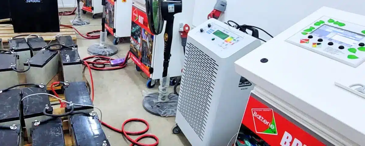6 régénérateurs BRT MAXI GOLD : Ces unités sont le cœur du centre. Elles utilisent des algorithmes de désulfatation par impulsions de courant haute fréquence. Ce procédé permet de dissocier les cristaux de sulfate de plomb () accumulés sur les plaques sans arrachement de matière active, rétablissant ainsi la surface d'échange ionique.